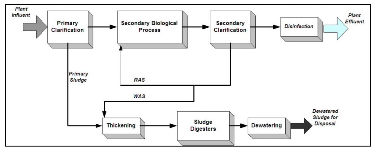 Fig. 1: Process block diagram for a typical wastewater treatment plant