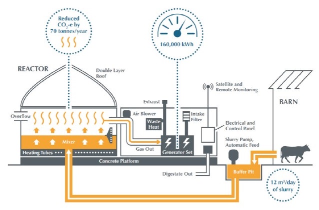 Canada has 37 operating on-farm anaerobic digestion systems, with most of these located on larger dairy farms in the Province of Ontario. Smaller biogas systems allow farmers to derive the many benefits of anaerobic digestion (AD) technology, such as manure valorization, pathogen reduction, improved nutrient availability and new revenue streams, without incurring the extra management and capital investment associated with larger systems.